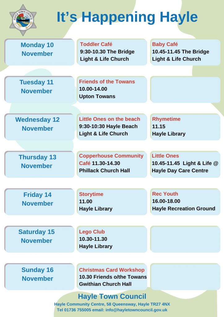 Hayle Town Council manages Hayle Community Centre, Hayle Outdoor Swimming Pool, Lethlean Lane Allotments, Public Conveniences, Hayle Recreation Ground, King George V Memorial Walk, Jubilee Path, The Millpond (not the play area), The Plantation and other small pockets of green land. Find out more
