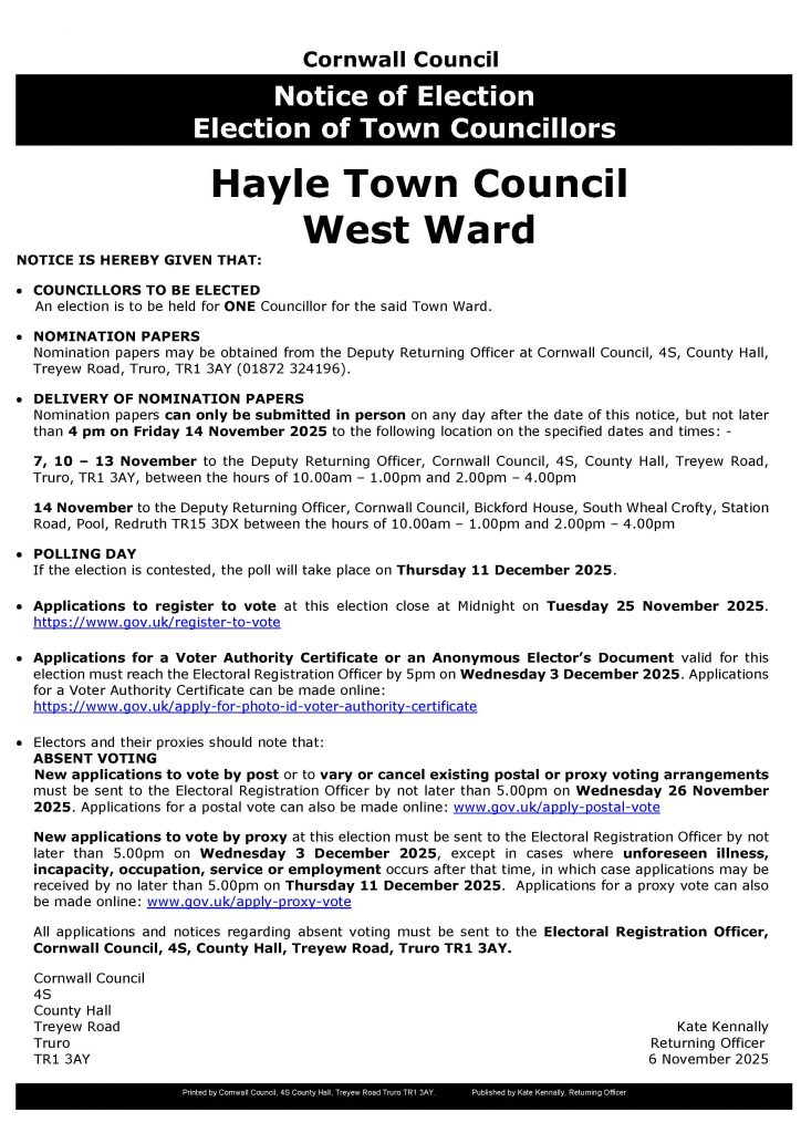 Hayle Town Council manages Hayle Community Centre, Hayle Outdoor Swimming Pool, Lethlean Lane Allotments, Public Conveniences, Hayle Recreation Ground, King George V Memorial Walk, Jubilee Path, The Millpond (not the play area), The Plantation and other small pockets of green land.