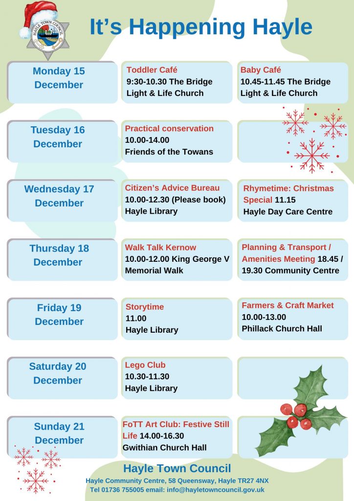 Hayle Town Council manages Hayle Community Centre, Hayle Outdoor Swimming Pool, Lethlean Lane Allotments, Public Conveniences, Hayle Recreation Ground, King George V Memorial Walk, Jubilee Path, The Millpond (not the play area), The Plantation and other small pockets of green land. Find out more