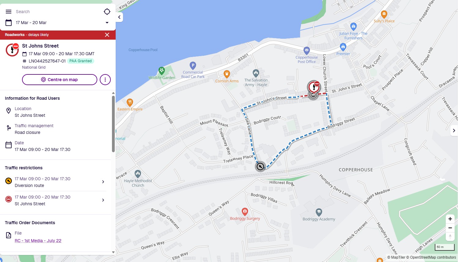 𝐏𝐥𝐞𝐚𝐬𝐞 𝐜𝐨𝐧𝐭𝐚𝐜𝐭 𝐍𝐚𝐭𝐢𝐨𝐧𝐚𝐥 𝐆𝐫𝐢𝐝 𝐝𝐢𝐫𝐞𝐜𝐭𝐥𝐲 𝐬𝐡𝐨𝐮𝐥𝐝 𝐲𝐨𝐮 𝐡𝐚𝐯𝐞 𝐚𝐧𝐲 𝐜𝐨𝐦𝐦𝐞𝐧𝐭𝐬 𝐨𝐫 𝐪𝐮𝐞𝐬𝐭𝐢𝐨𝐧𝐬 𝐫𝐞𝐠𝐚𝐫𝐝𝐢𝐧𝐠 𝐭𝐡𝐞𝐬𝐞 𝐰𝐨𝐫𝐤𝐬. Road Traffic Regulation Act 1984 S.14: Temporary Prohibition of Traffic Location: Clifton Terrace, Hayle Timing: […]