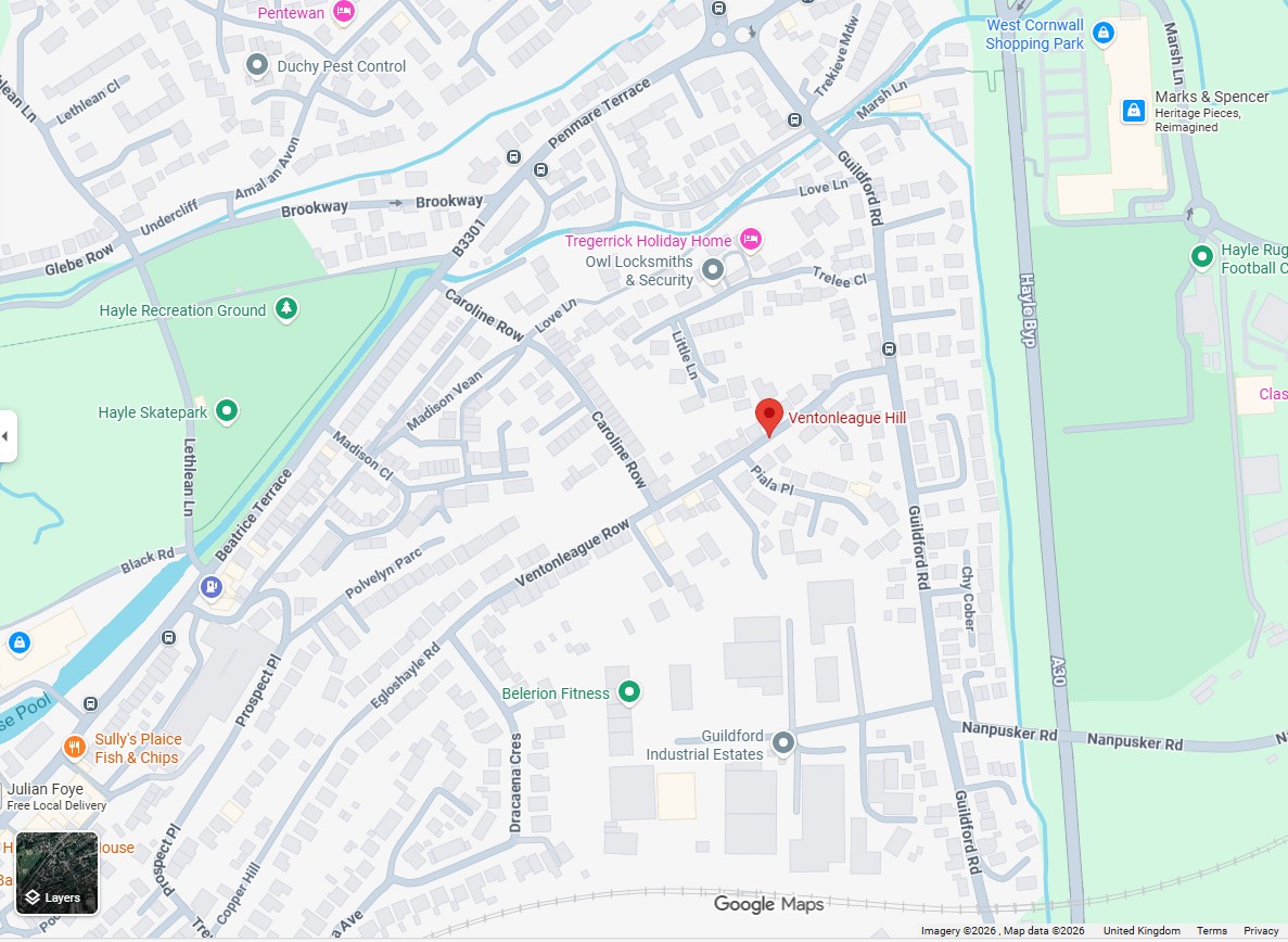 Permit reference: G8012HYL032CCCTS-02 Contractor name: CTS Street name: :VENTONLEAGUE HILL, HAYLE Dates: 19/01/2026 – 21/01/2026 Traffic measure: Some carriageway incursion