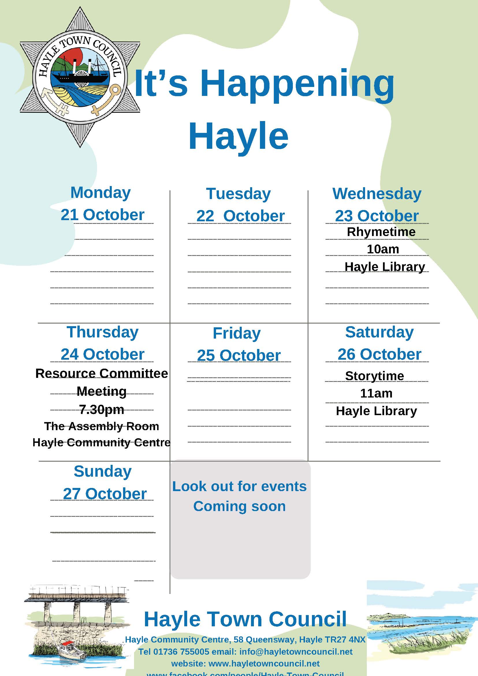 Hayle Library closed between Monday 4th November until Monday 11th November
