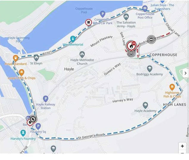 Road Traffic Regulation Act 1984 S.14: Temporary Prohibition of Traffic at Sea Lane and Bodriggy Street, Hayle Timing: 28th October 2024 to 20th December 2024 (24 hrs)