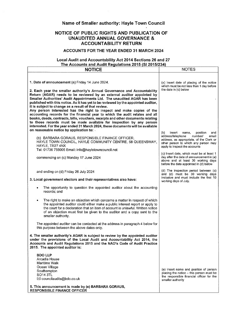 ‘Notice of Public Rights and Publication of Unaudited Annual Governance & Accountability Return’