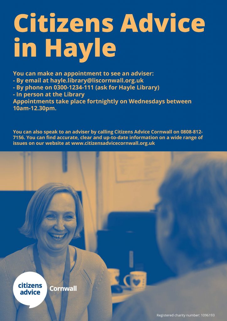 The CAB is currently running at the Library on the 1st and 3rd Wednesday of the month. Booking essential.